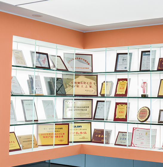 Spoločnosť má čestné tituly Vedecko-technologické malé a stredné podniky provincie Zhejiang, Cloudové podniky provincie Zhejiang, Postdoktorandské pracovisko provincie Zhejiang, „Špecializované a nové“ podniky mesta Ningbo, Centrum inžinierskych technológií mesta Ningbo, Kótované podniky Centra akciovej burzy mesta Ningbo, Zelená továreň mesta Cixi a 50 najlepších produkcií na aker mesta Cixi. Má 123 patentov rôznych typov, je členskou jednotkou Čínskeho výboru pre štandardizáciu osvetľovacích spotrebičov, zúčastňuje sa na 2 národných normách a 7 skupinových normách, má svedecké laboratóriá TUV a SGS a zriadila spoločné výskumné a vývojové centrum pre inteligentné osvetľovacie produkty a stážovú základňu „priemysel-univerzita-výskum“ so Šanghajskou univerzitou aplikovaných technológií.